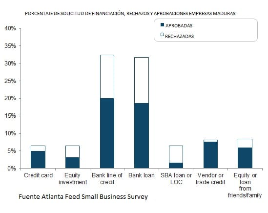 Sin embargo, estas dificultades que hemos repasado y que teóricamente deben hacer prácticamente imposible la financiación para las pequeñas empresas jóvenes, no reflejan la realidad del todo, ya que, la diferencia entre las jóvenes empresas que consiguen financiación (aproximadamente un 50%) y las pequeñas empresas maduras que también la consiguen (un 74% ) como vemos no es tan elevada como podría parecer en primera instancia.